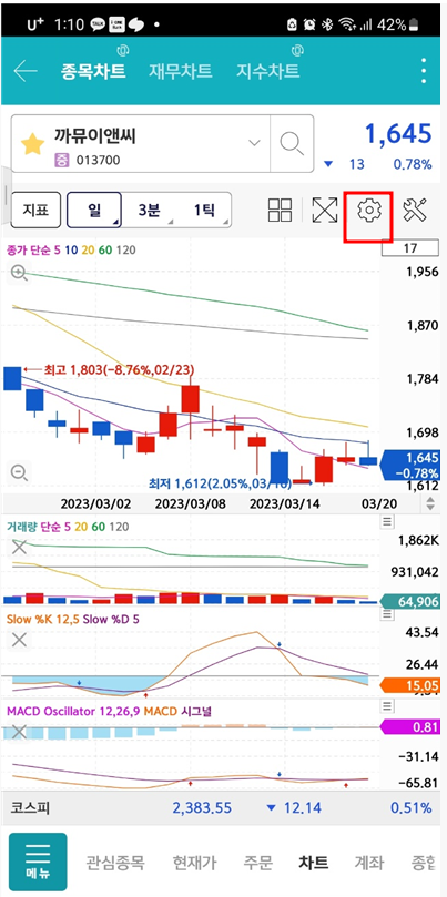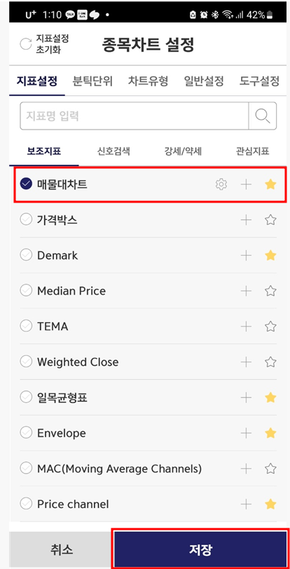 매물대 차트 설정방법 (휴대폰 MTS설정방법)
